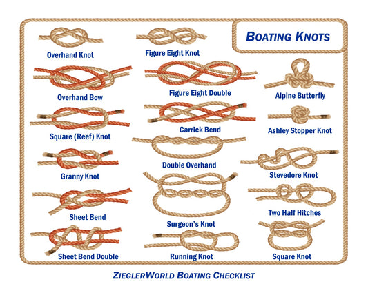 Boating Safety Education Equipment Checklist Reference Guide & Boat Knot How To Guide