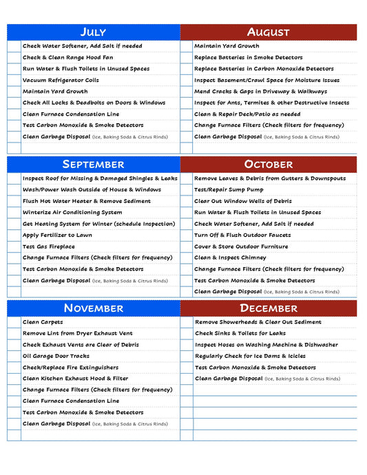 Home Maintenance Monthly Checklist - Perfect for Landlord or Homeowner